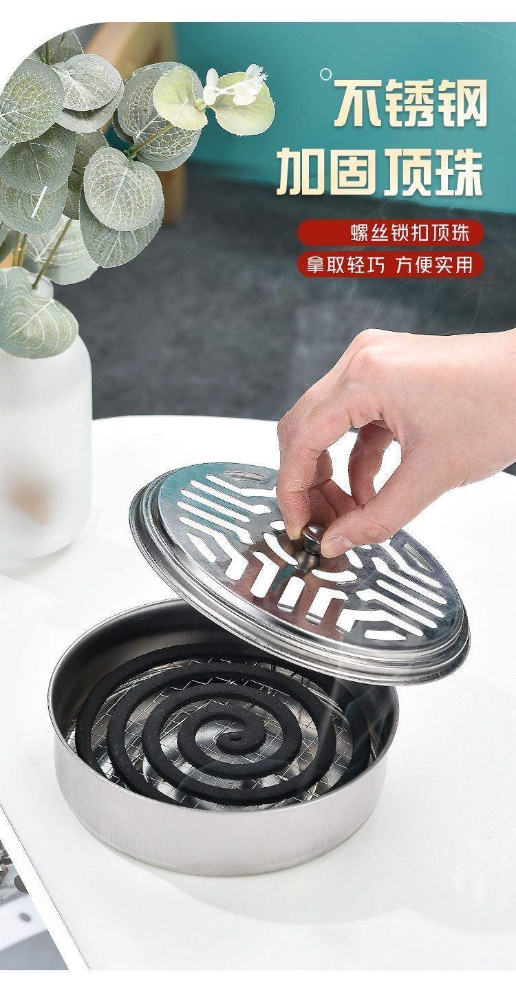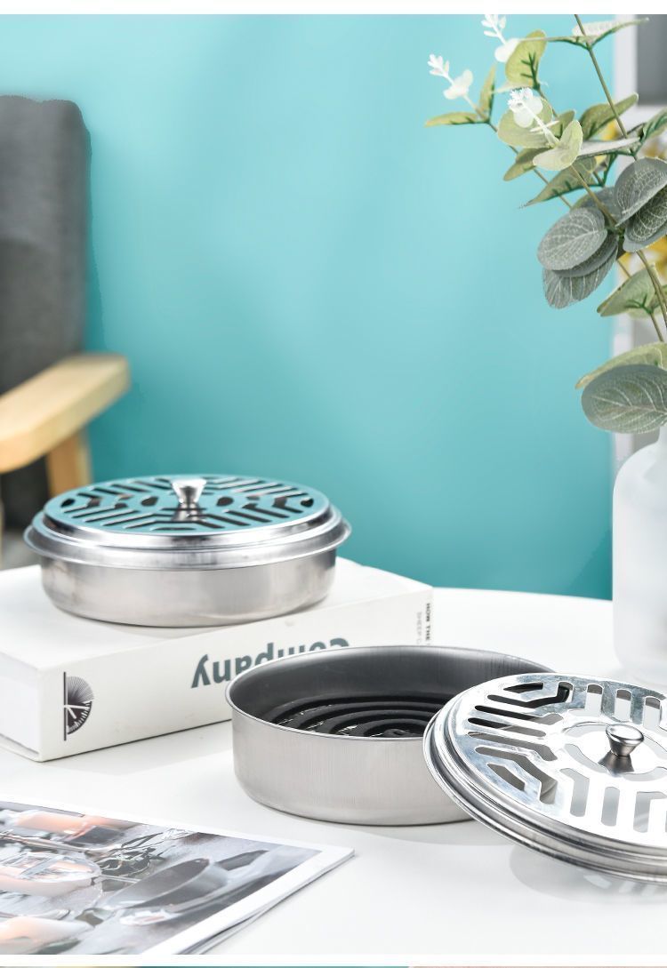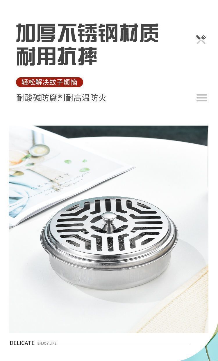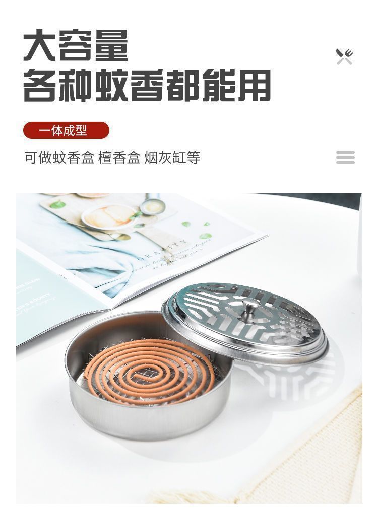 商品名称:防火蚊香盒家用不锈钢蚊香盘带盖除蚊盒蚊香架子创意接灰盘蚊香炉