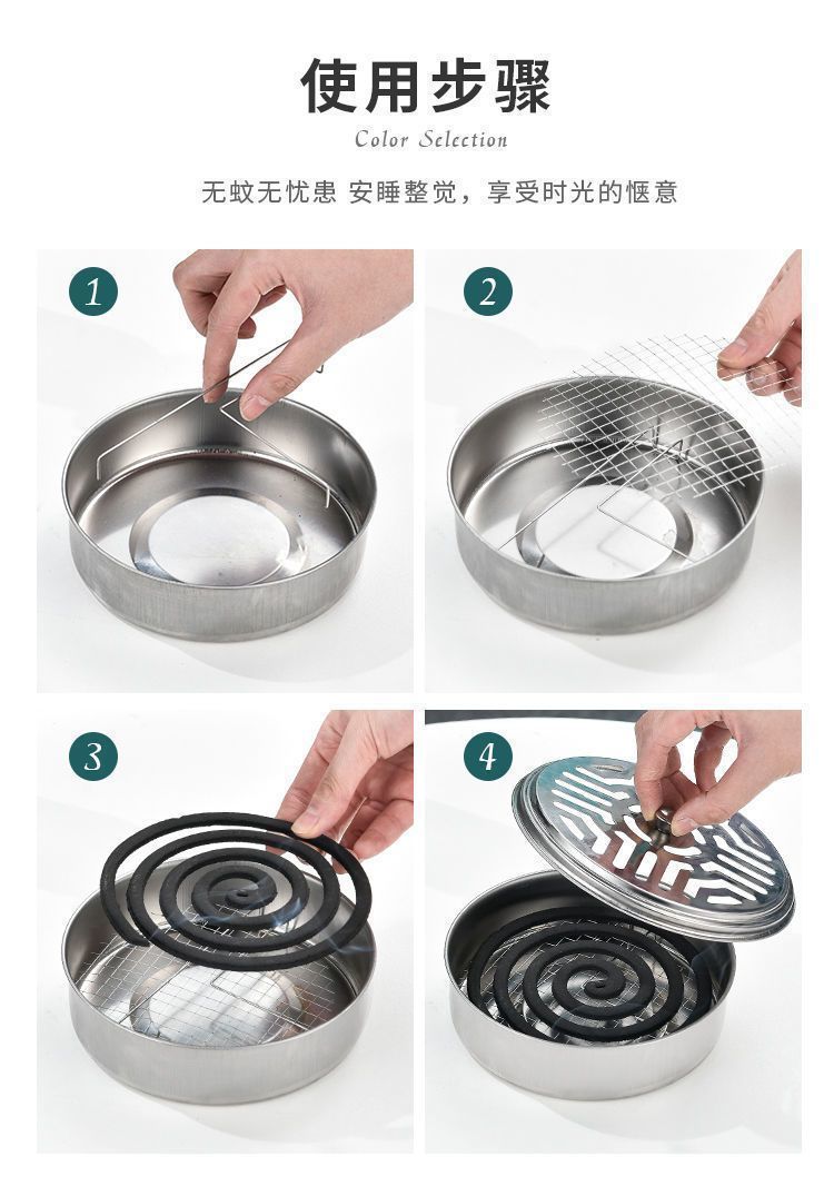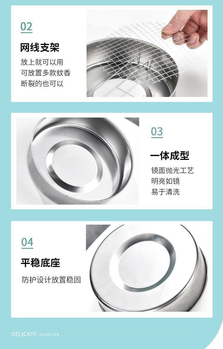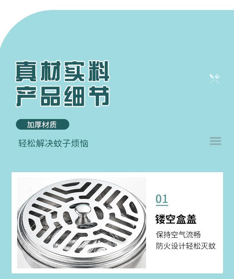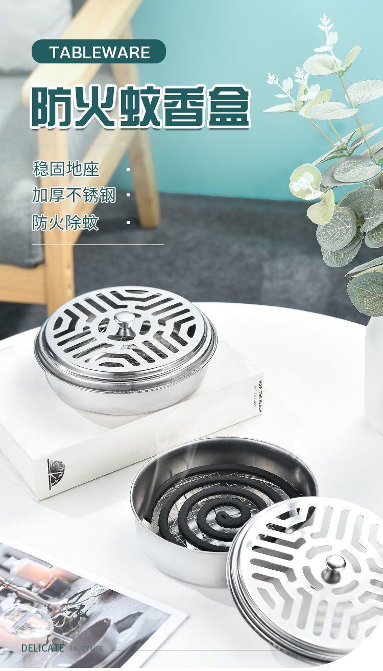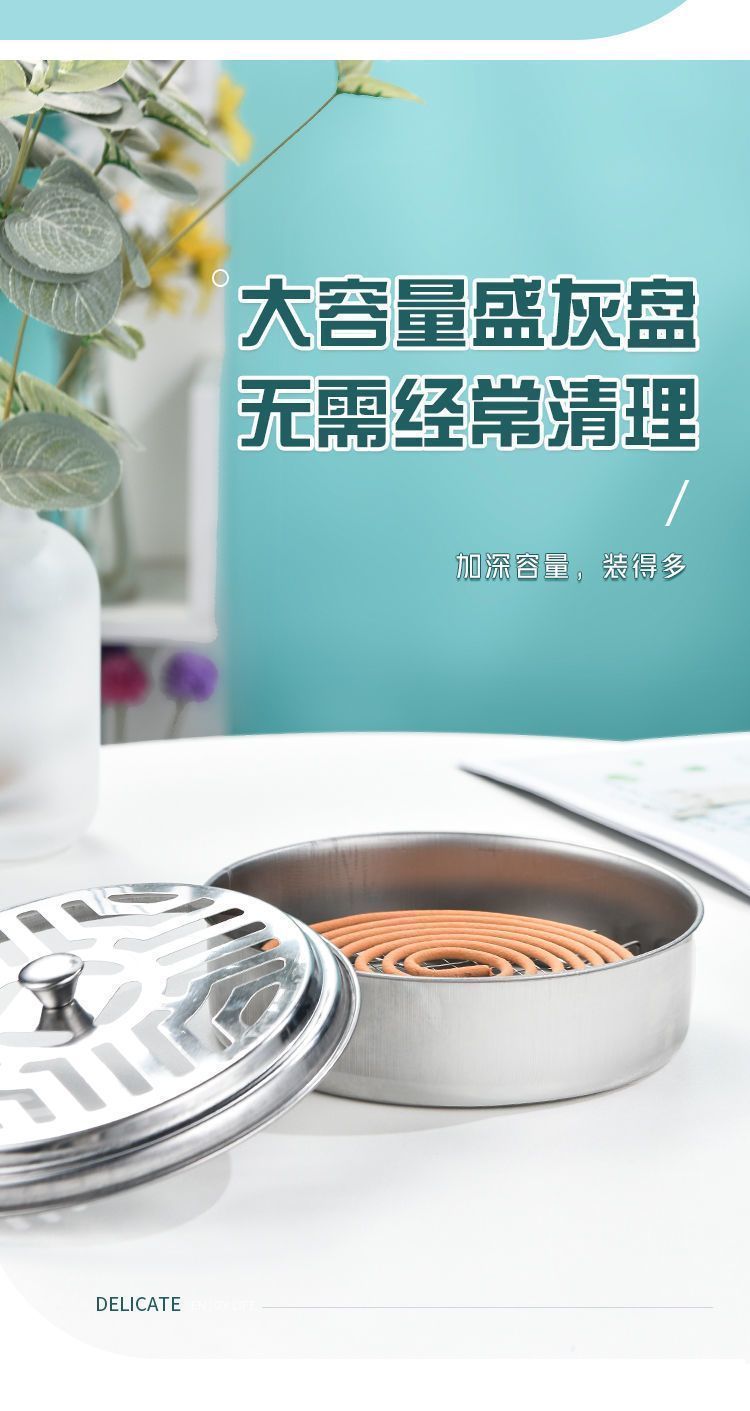 商品名称:防火蚊香盒家用不锈钢蚊香盘带盖除蚊盒蚊香架子创意接灰盘蚊香炉