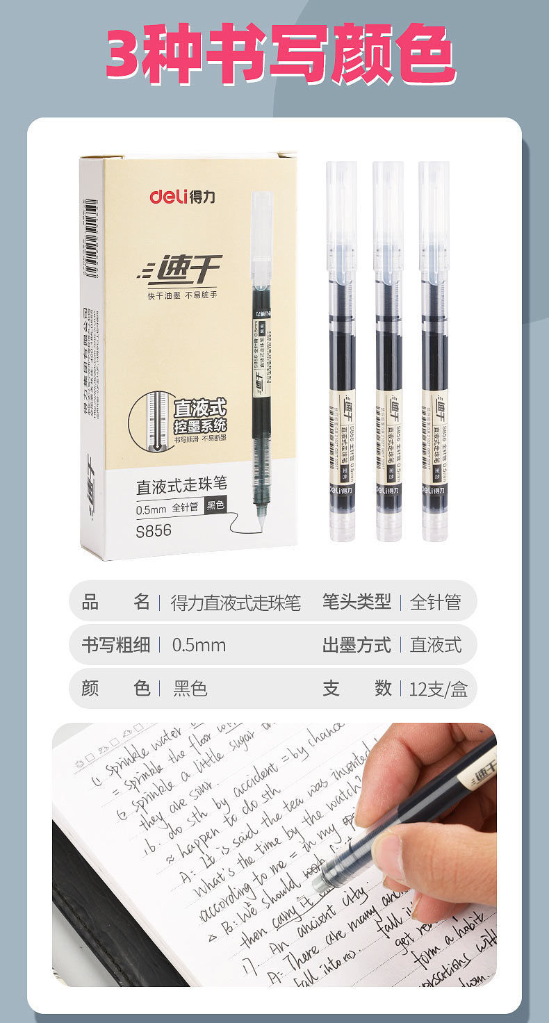 得力直液式走珠笔中性笔黑色水笔红笔水性笔子弹头签字笔学生刷题