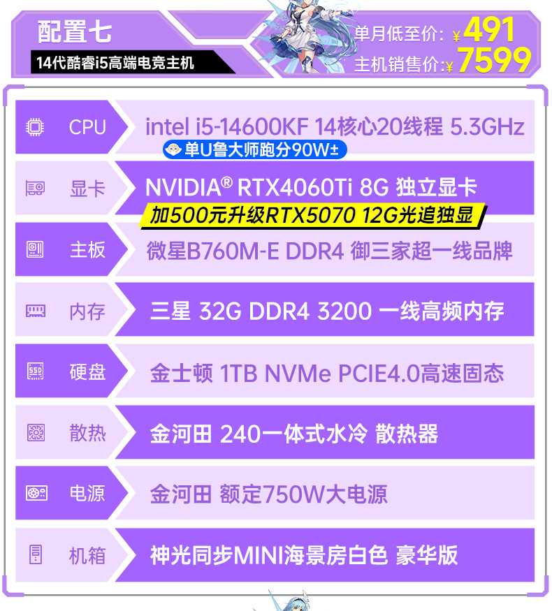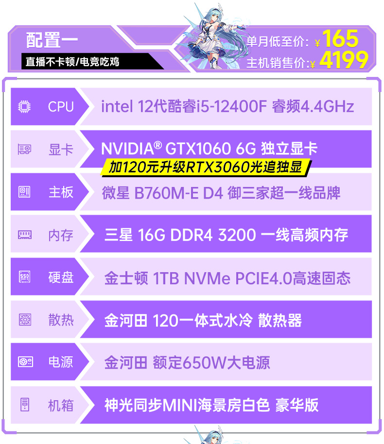 商品名称:台式机电脑主机租赁高配置办公