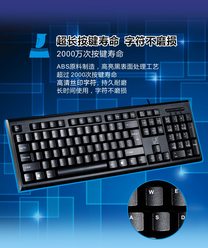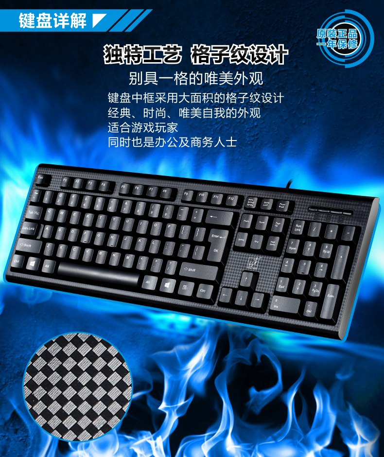 追光豹键盘Q9USB有线 家用商务办公台式电脑装机配送老式接头圆口