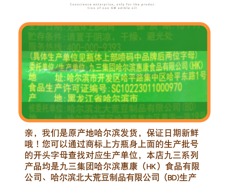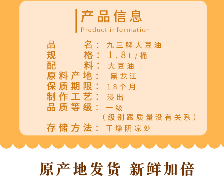商品名称:九三色拉油非转基因一级大豆油桶装1800ml东北特产
