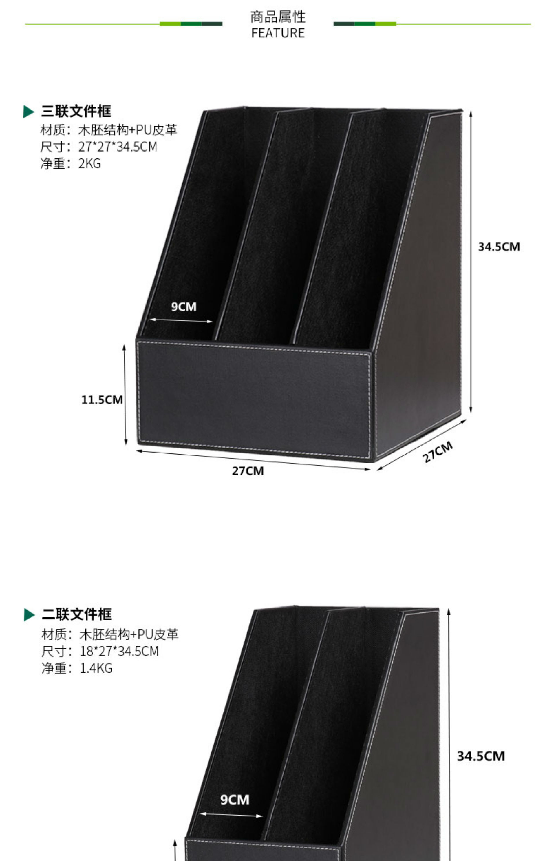 商品名称:高档商务桌面文件杂志整理收纳盒二栏双排文件座框办公用品