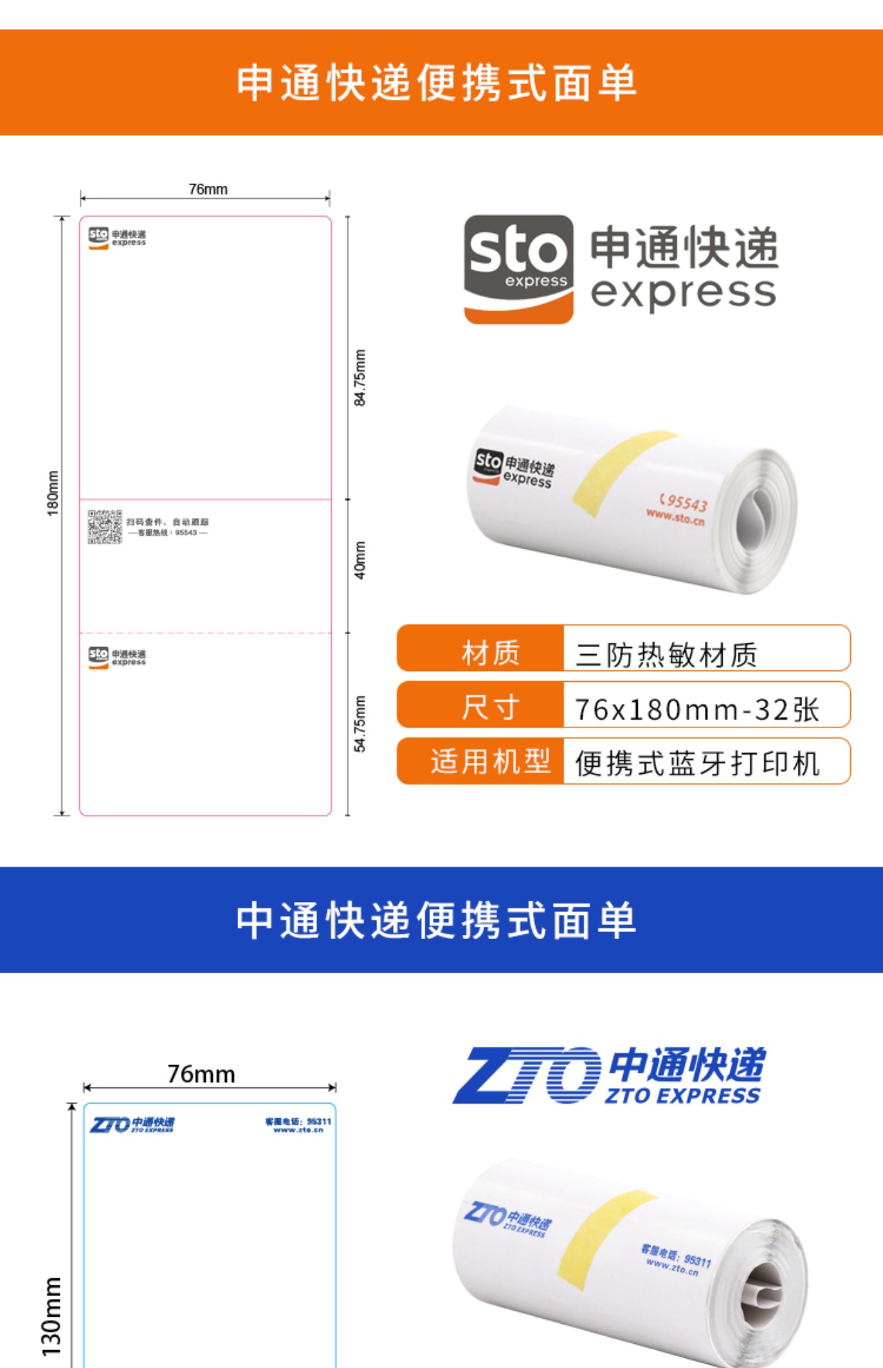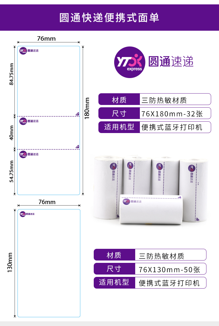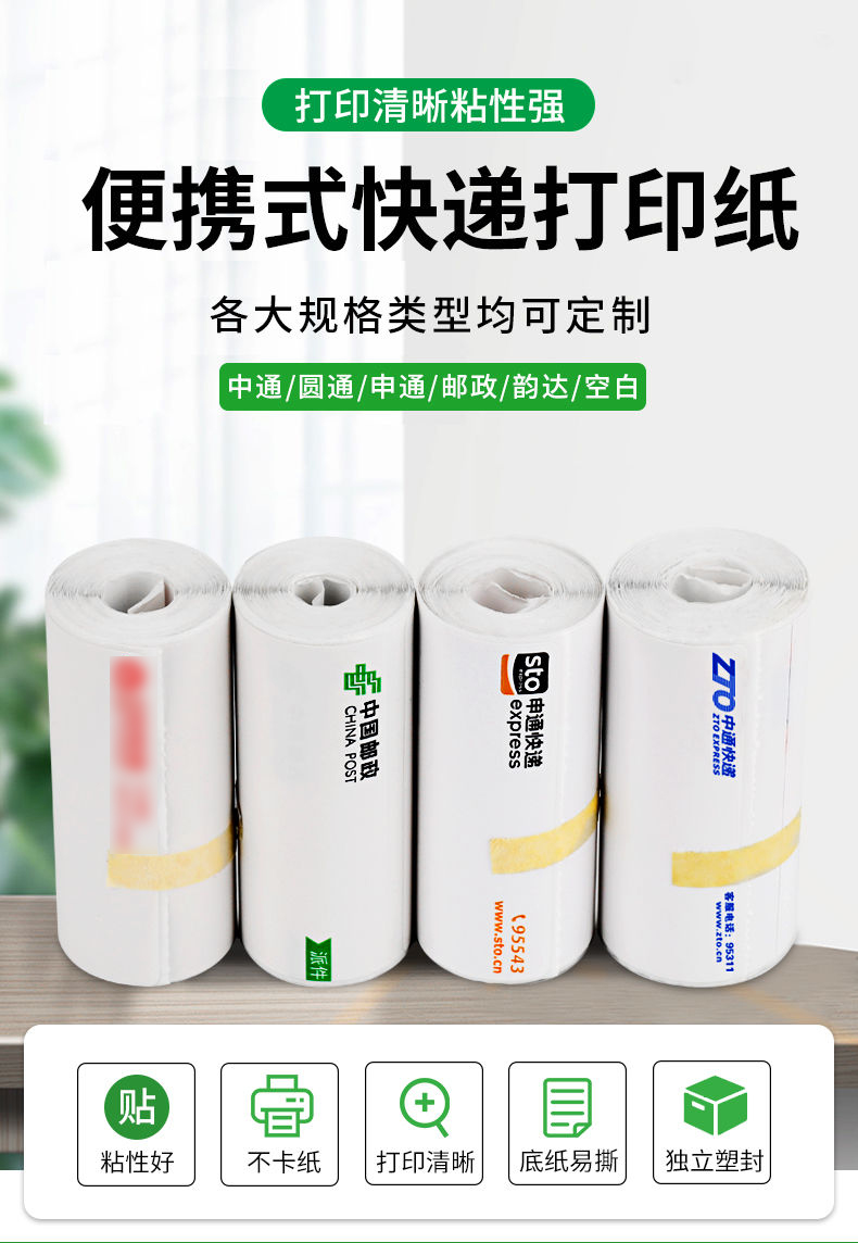 商品名称:快递打印纸便携式热敏纸菜鸟圆通中通申通空白一联三联快递面单纸